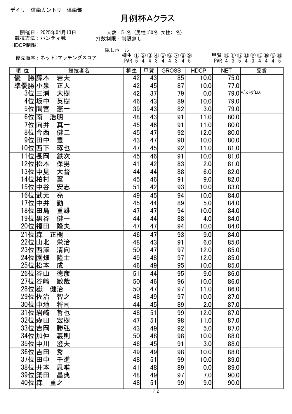 12日(日) | Aクラス | PDF | JPG1 , JPG2 | |