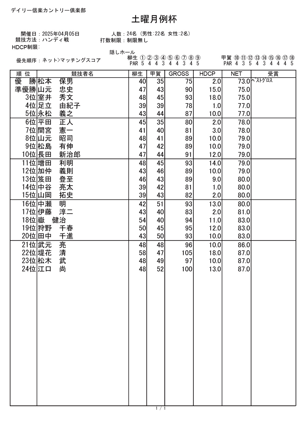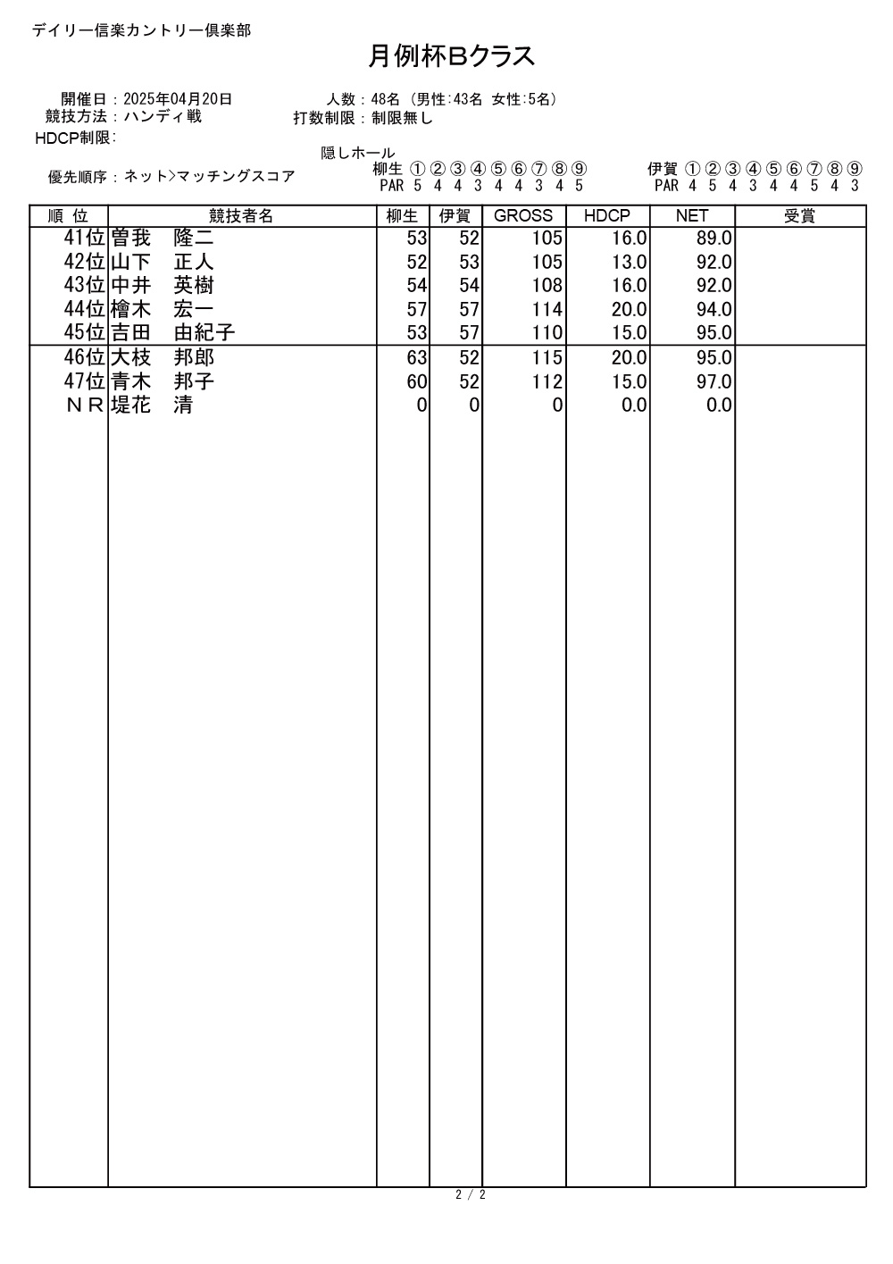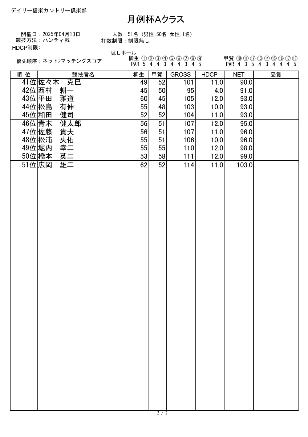 4月 | 2日(火) | シニア&レディース | PDF | JPG |