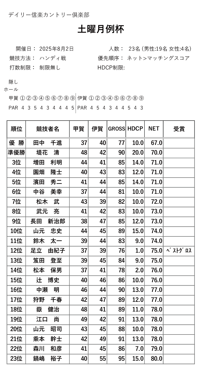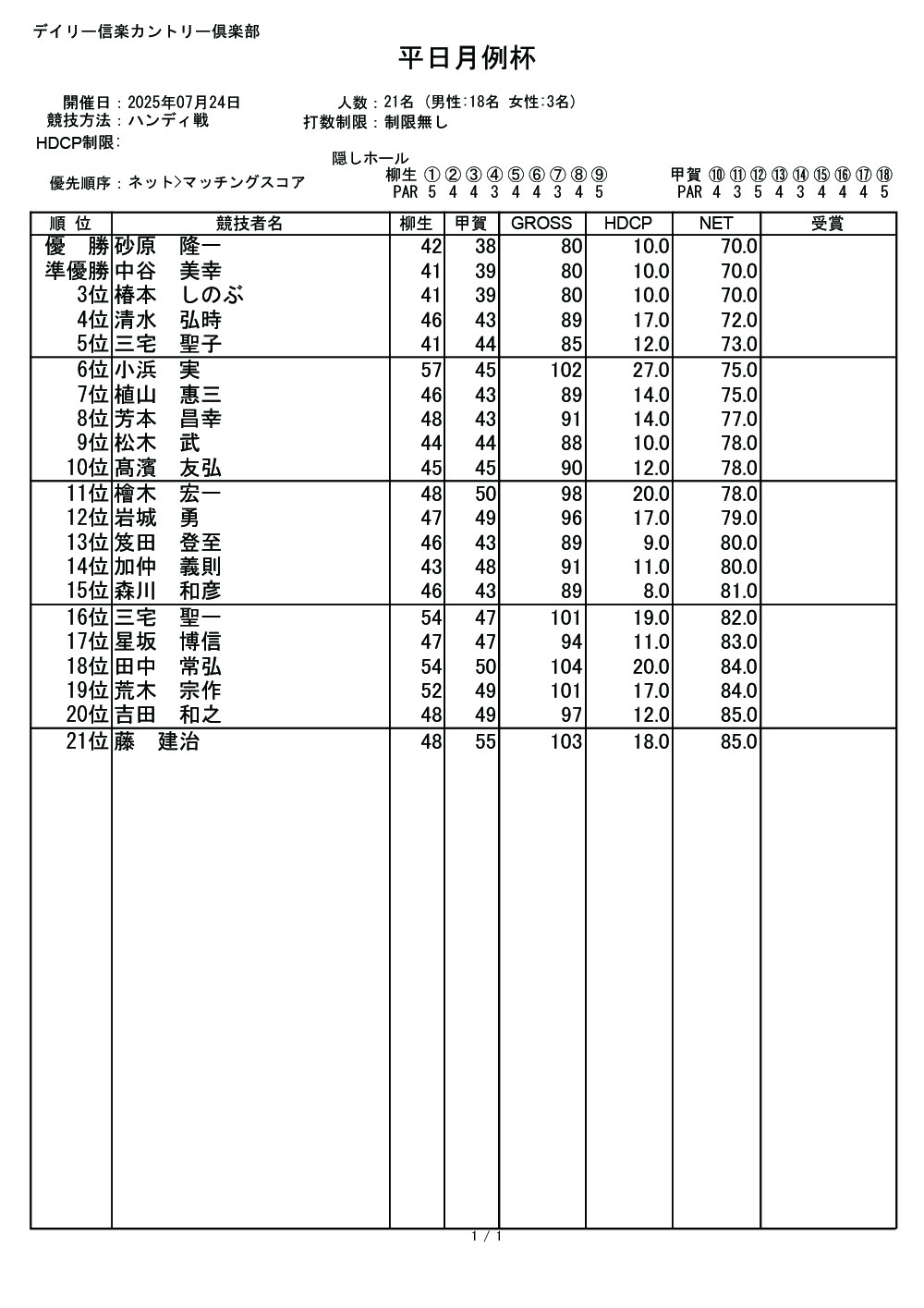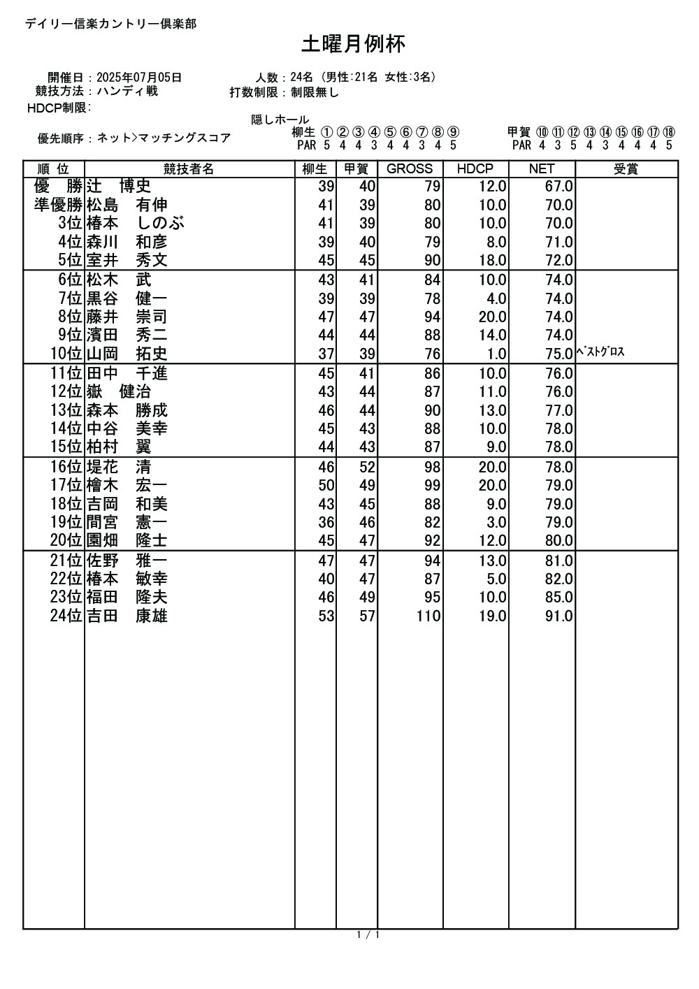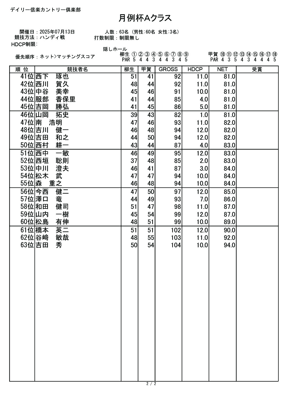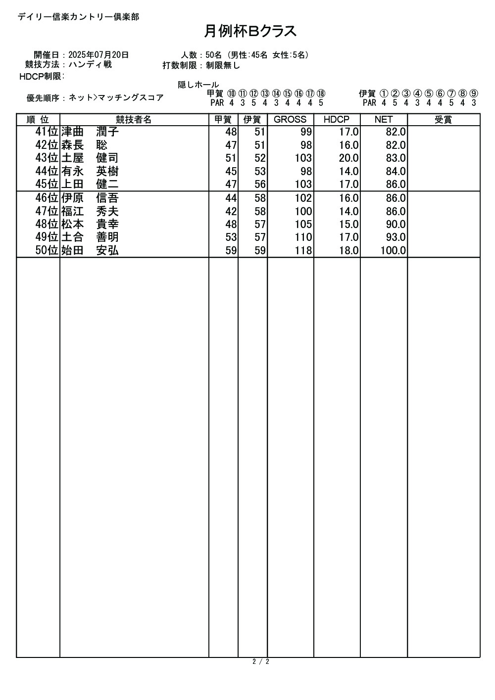 7月 | 2日(火) | シニア&レディース | PDF | JPG |