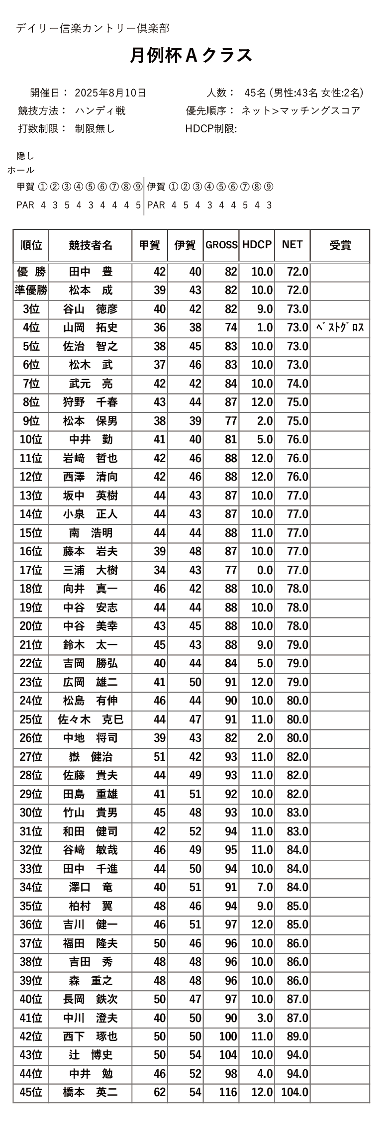 10日(日) | Aクラス | PDF | JPG1 , JPG2 | |