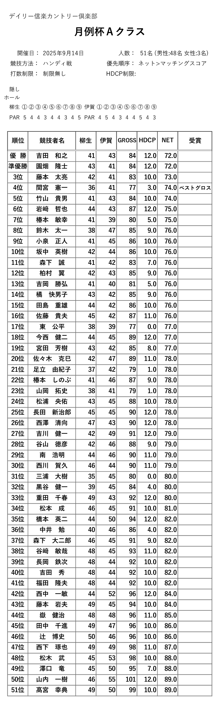 12日(日) | Aクラス | PDF | JPG1 JPG2 | |