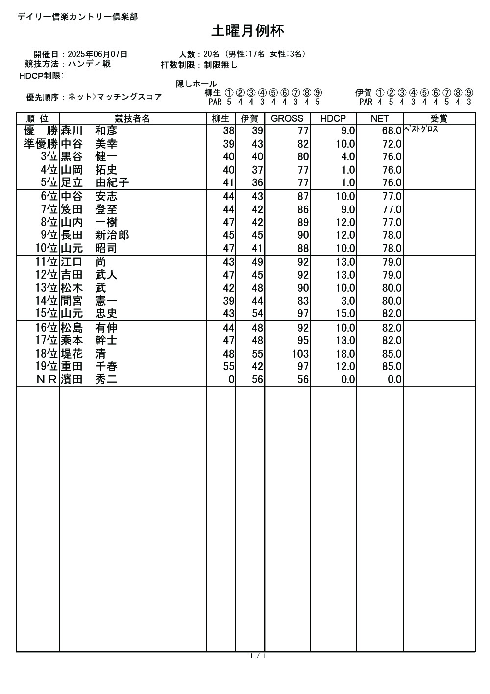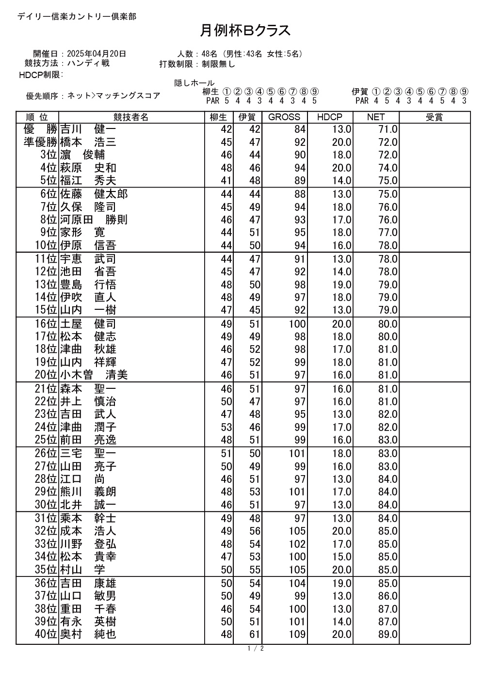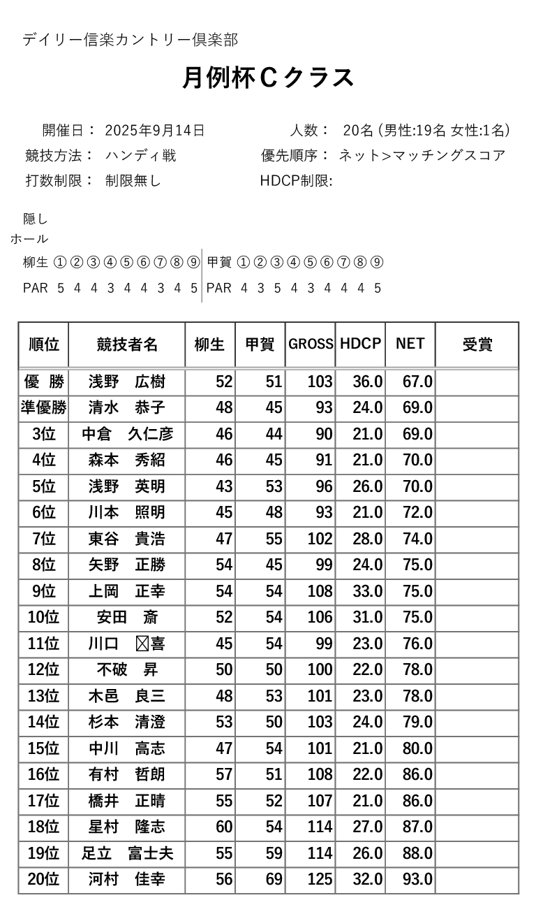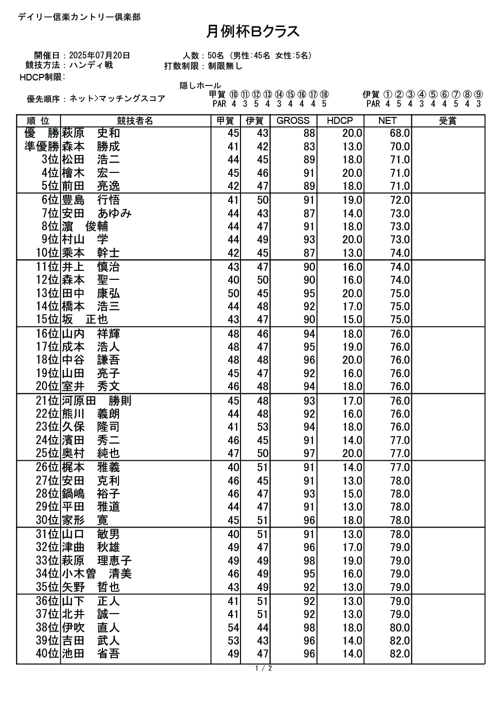 20日(日) | Bクラス | PDF | JPG1 , JPG2 | |