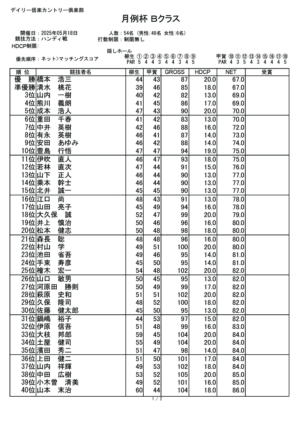 17日(日) | Bクラス | PDF | JPG1, JPG2 | |