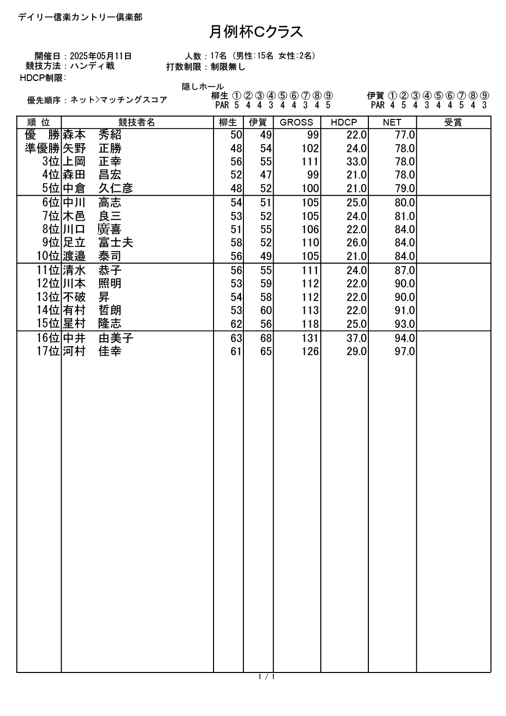 17日(日) | Bクラス | PDF | JPG1 , JPG2 | |