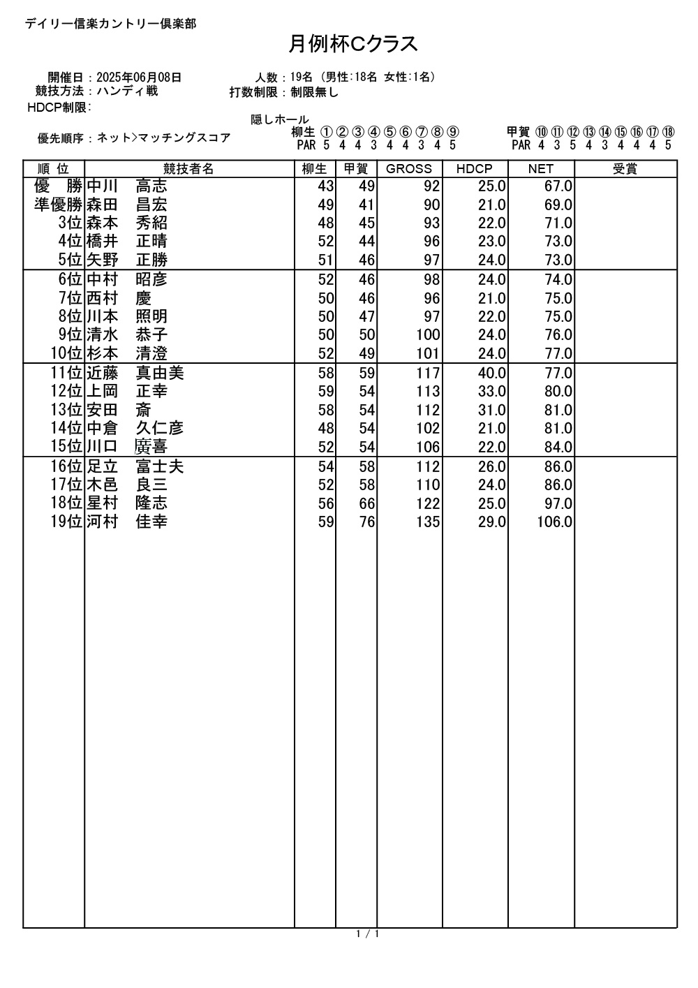19日(日) | Bクラス | PDF | JPG1 , JPG2 | |