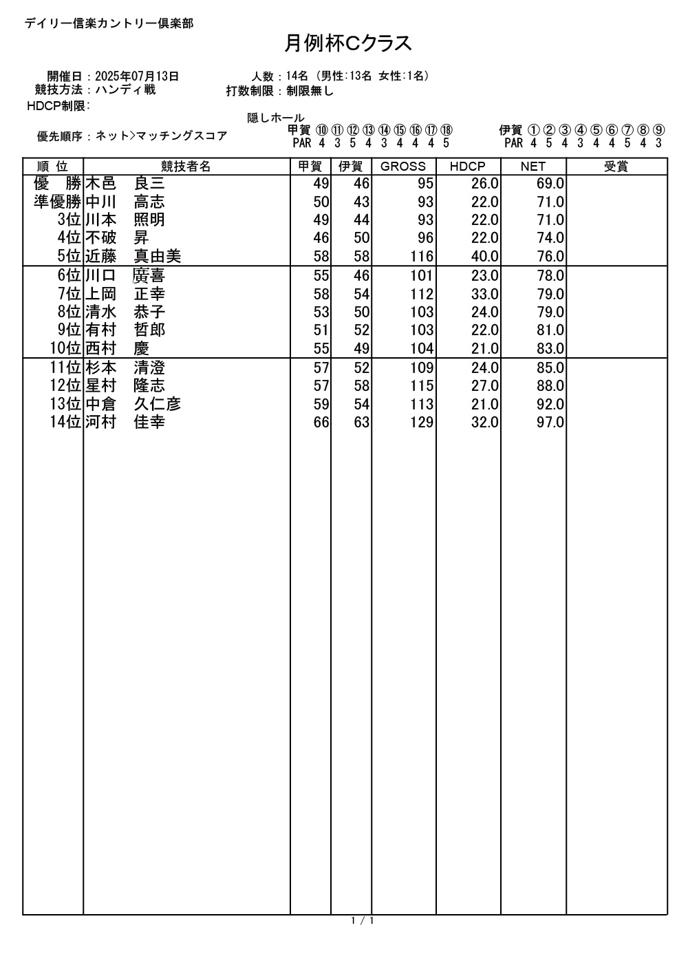 13日(日) | Aクラス | PDF | JPG1 , JPG2 | |
