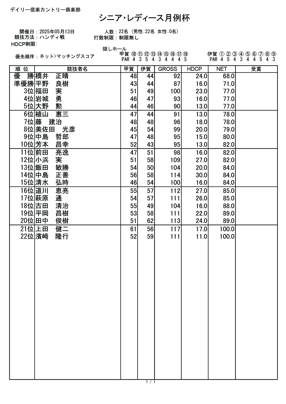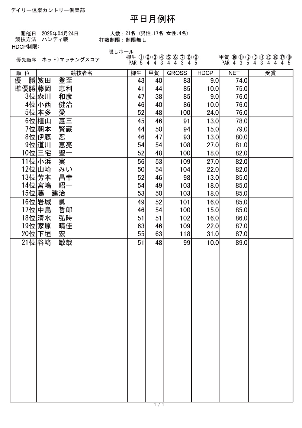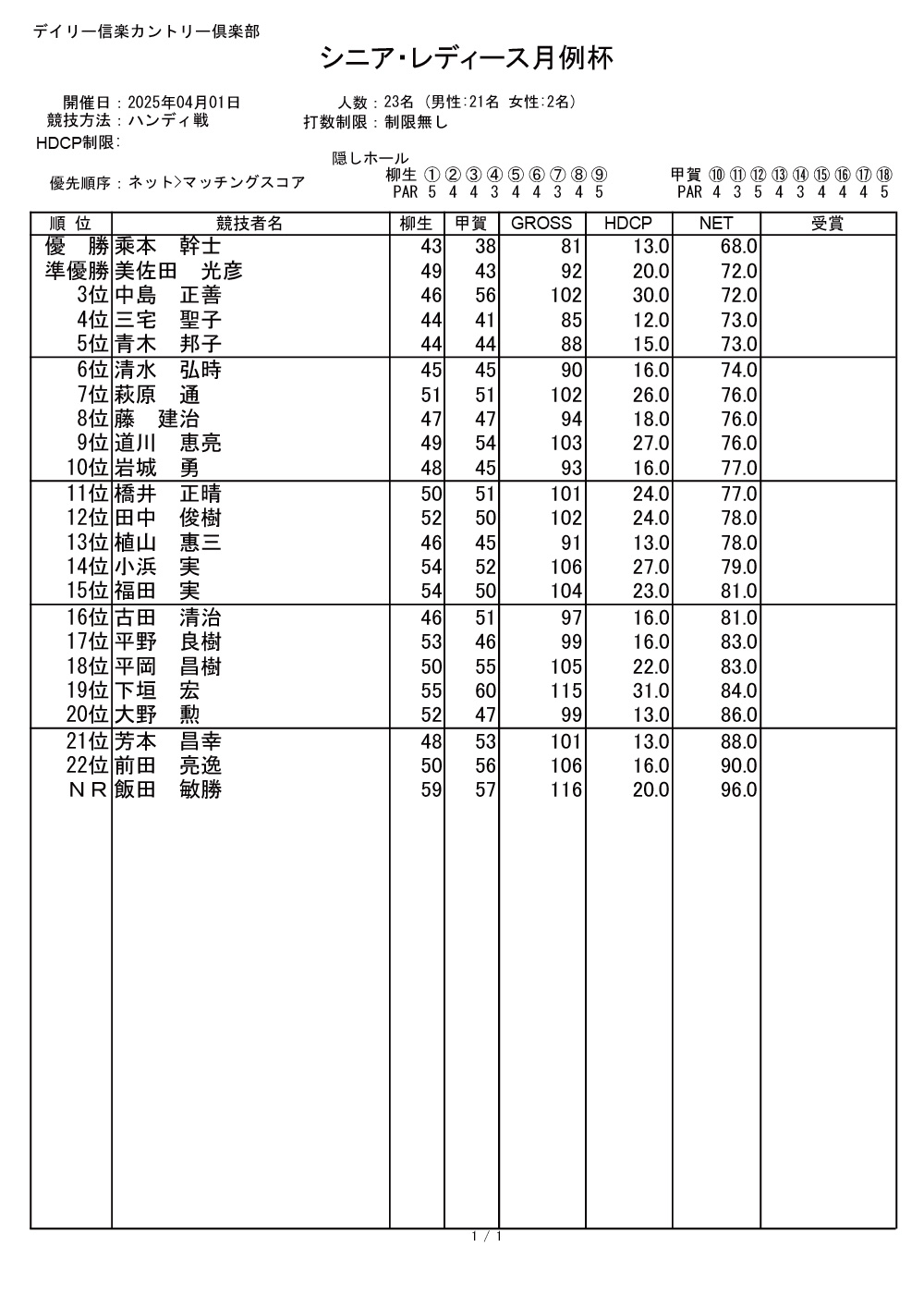 4月 | 1日(火) | シニア&レディース | PDF | JPG |
