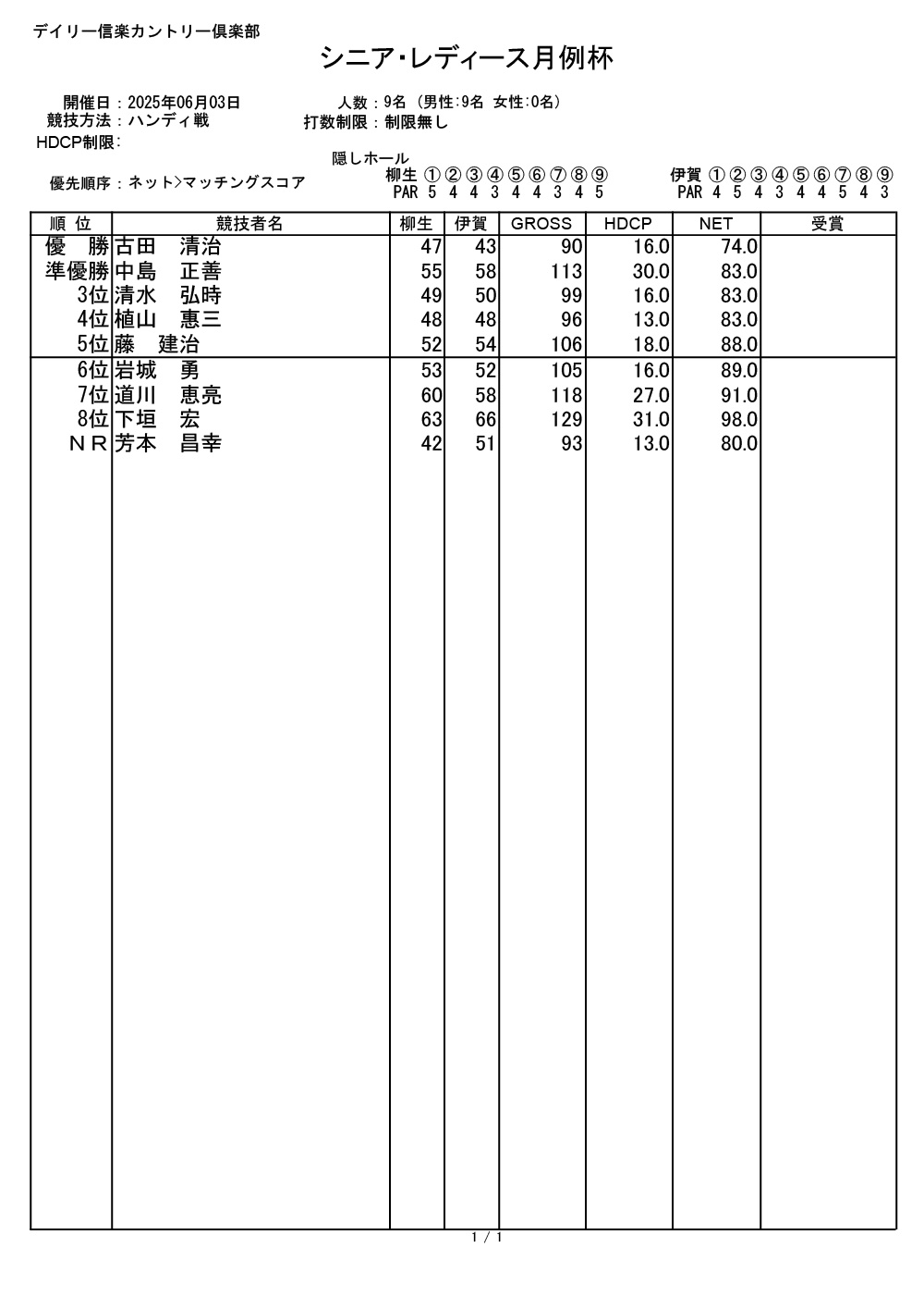 6月 | 3日(火) | シニア&レディース | PDF | JPG |