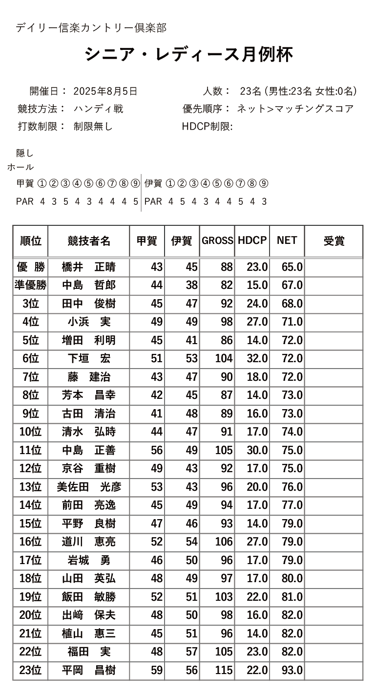 8月 | 1日(火) | シニア&レディース | PDF | JPG |