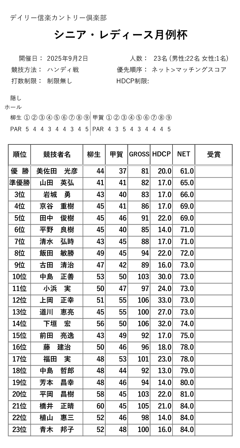 9月 | 2日(火) | シニア&レディース | PDF | JPG |