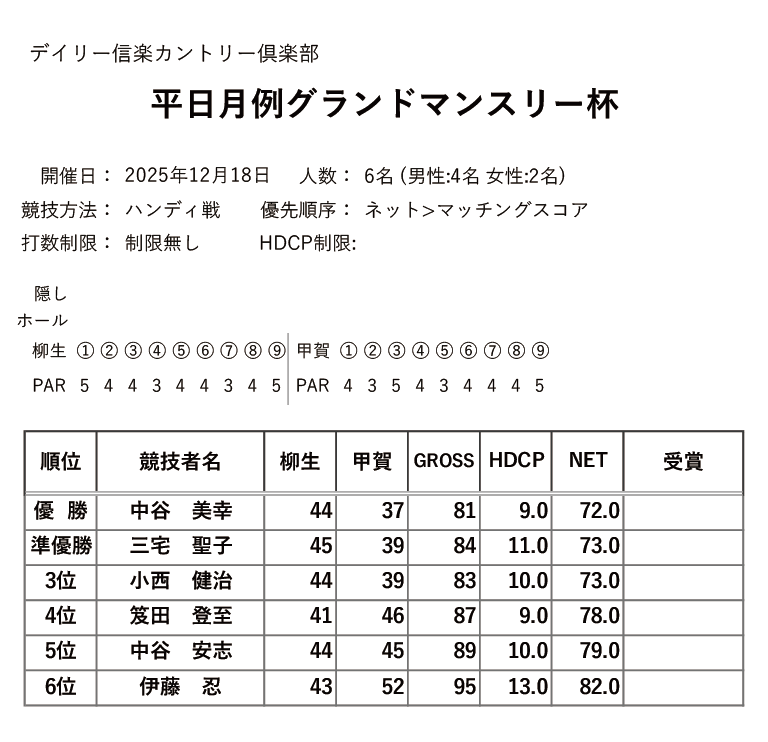 2025年12月度に開催されました、グランドマンスリー杯の競技結果を掲載しました。